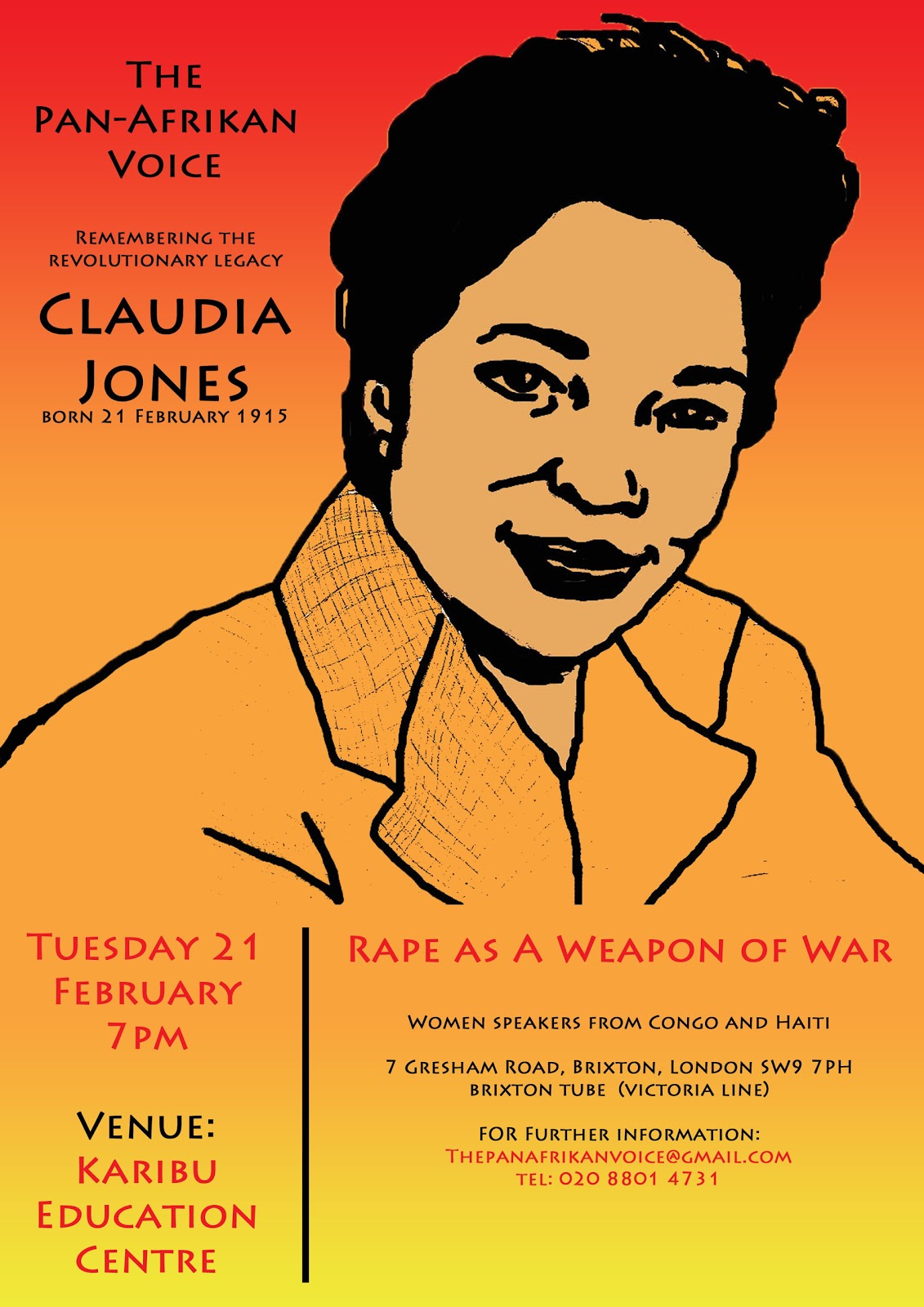 Remembering Claudia Jones - Visit her grave in Highgate Cemetery on 19th February @ 1pm- Rape as a Weapon of War - Public Meeting - 21st February called by the The Pan-Afrikan VoiceRead more…