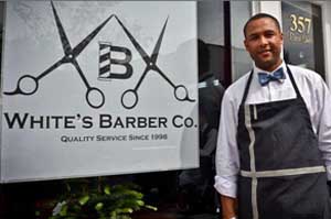 Brian White, owner of White's Barber Co. in Laurel, Maryland, adds a new twist to the d