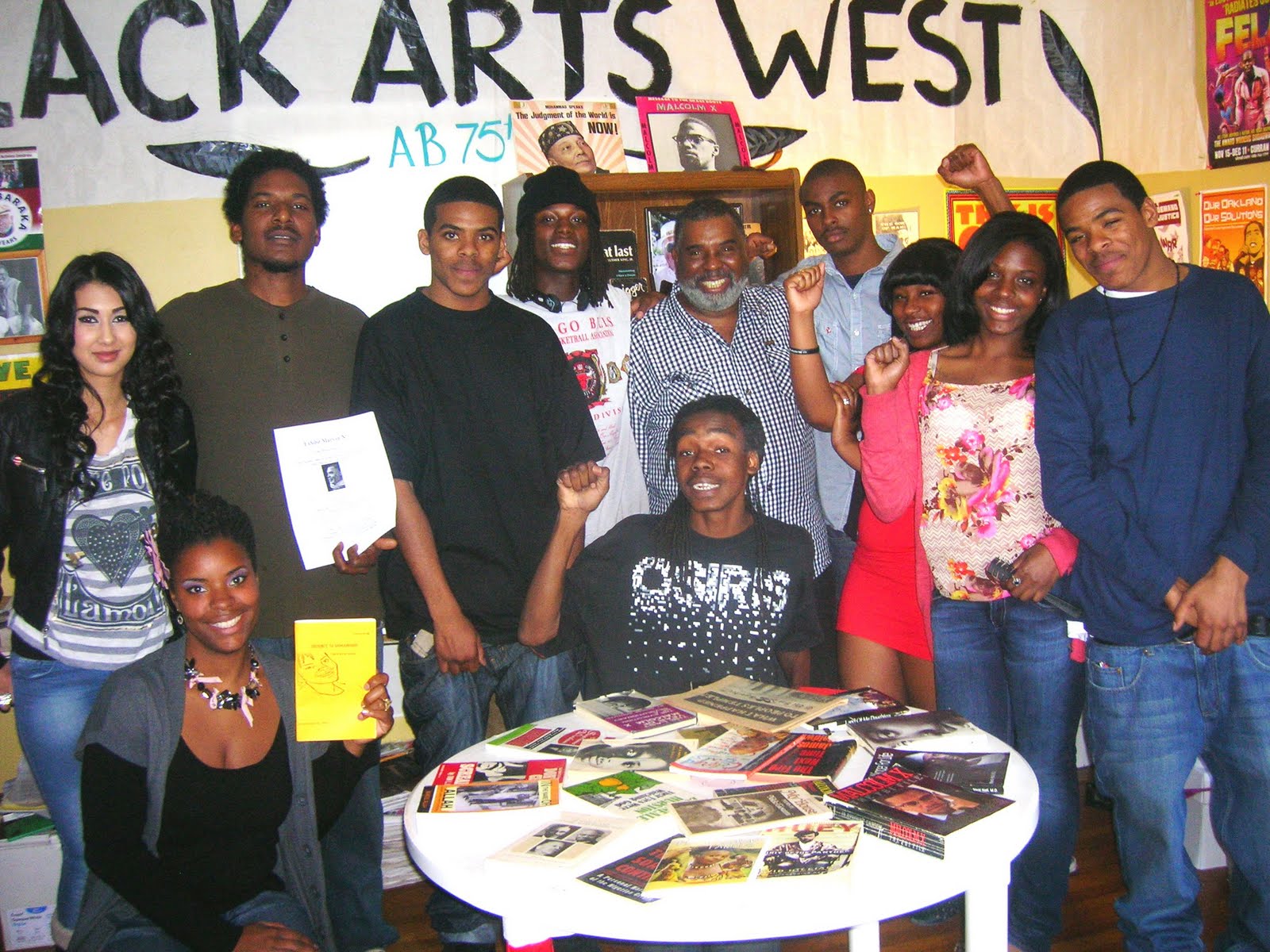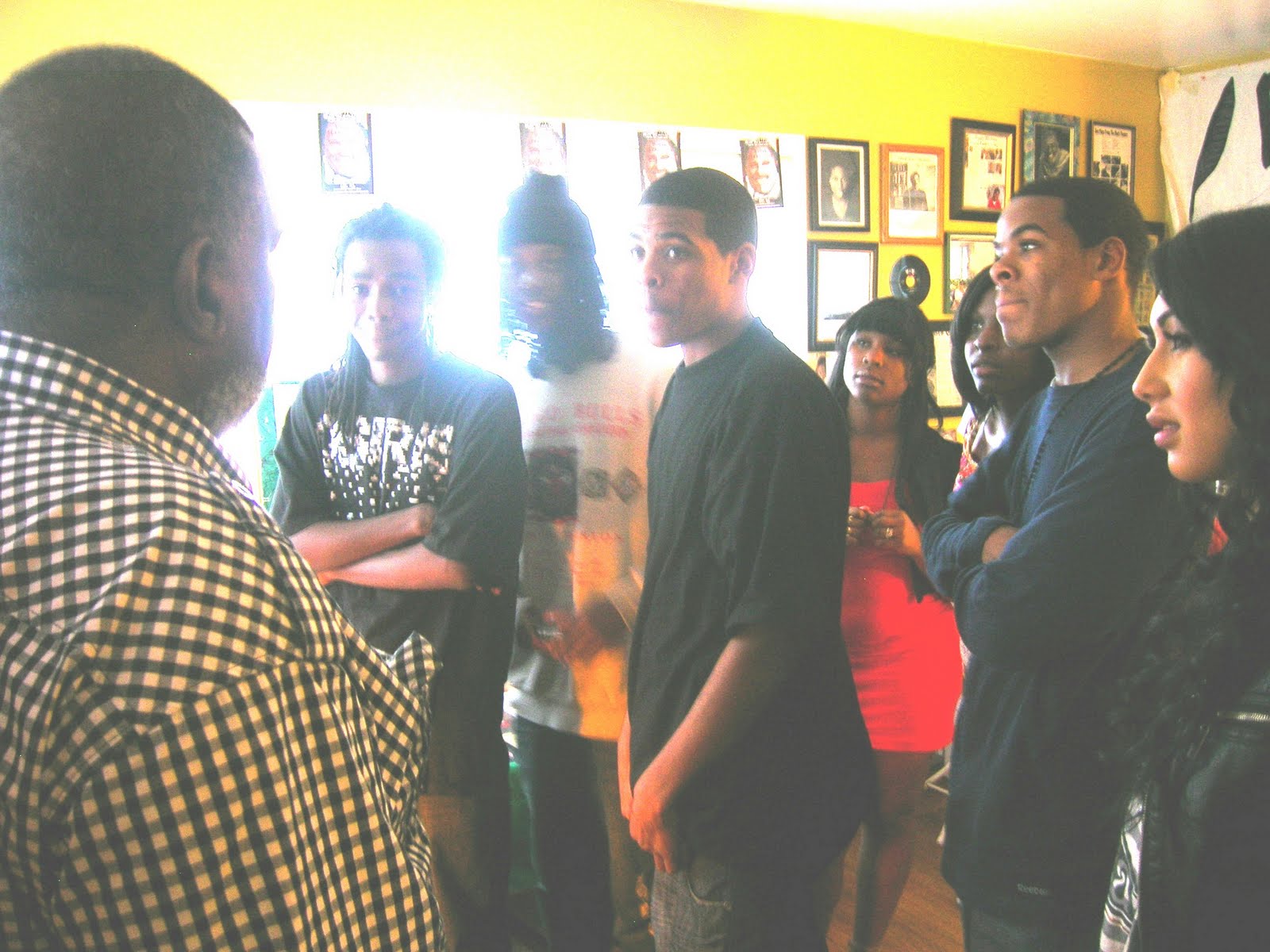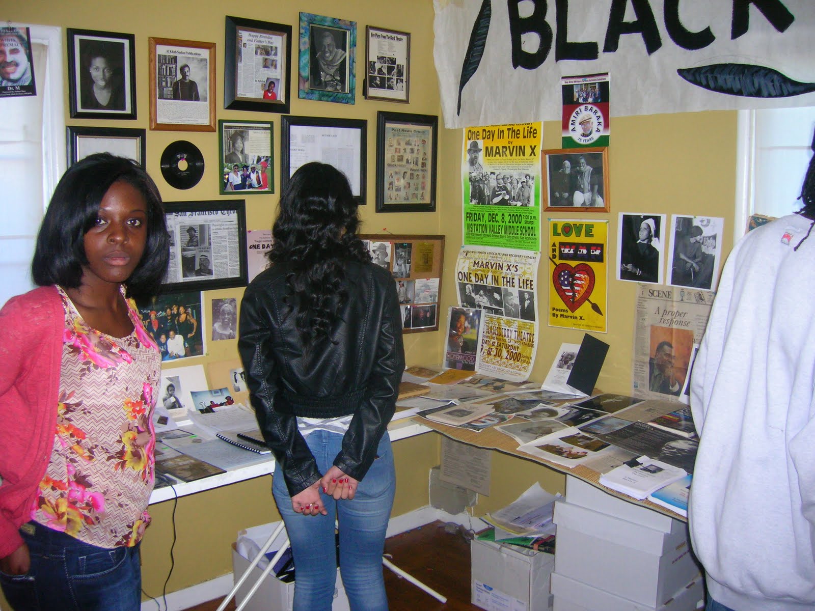 Exhibit Marvin X opened on Friday, January 13, with students from Berkeley High (B-Tech). They enjoyed the exhibit, hosted by Marvin X's student writers, Aries Jordan and Toya Carter. The students were accompanied by Math teacher Ramal Lamar, a student at Marvin X's Academy of da Corner. Ramal is a graduate student in Math at Cal State Eastbay. The Master Poet narrated his exhibit. Aries Jordan and Toya Carter read from his selected writings.